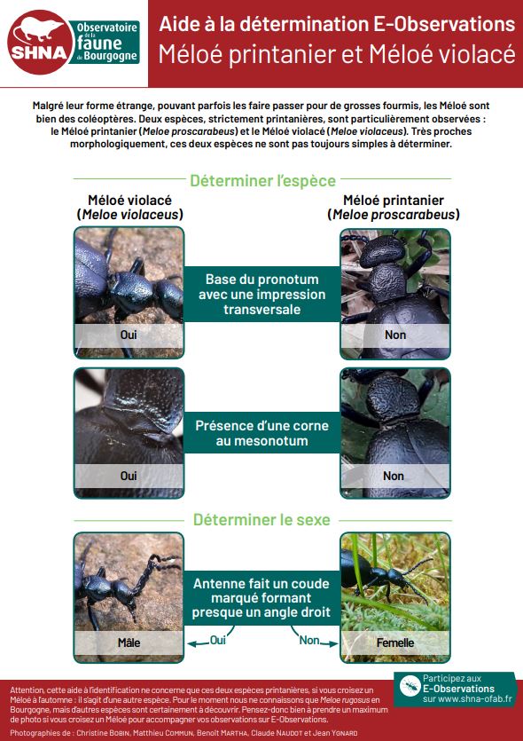 Les aides à la détermination "Méloé printanier et Méloé violacé" et "Les Crache-sang" sont en ligne et pourront vous accompagner pour vos observations à venir !
