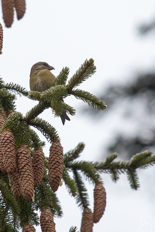 Le Bec-croisé des sapins s’est spécialisé dans la consommation des graines de conifères, notamment de l’Epicéa (Picea abies), du Sapin de Douglas (Pseudotsuga menziesii) ou des pins (Pinus sp.) : son bec à mandibules croisées lui permet de mieux déchiqueter les cônes et d’extraire les graines.