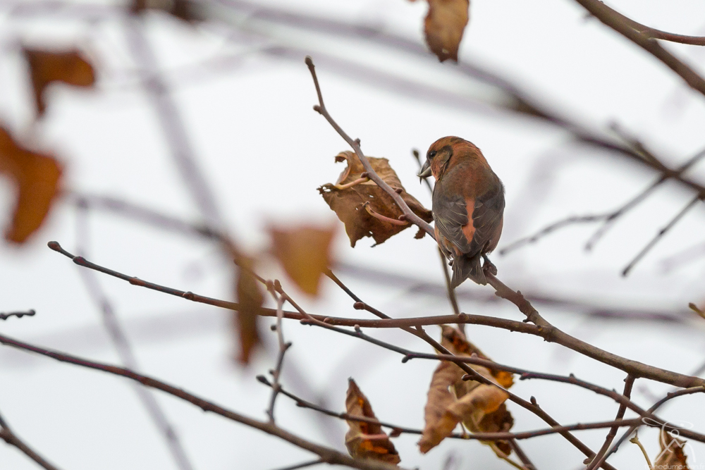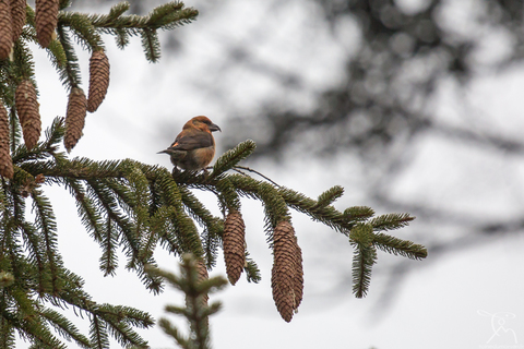 Le Bec-croisé des sapins est un oiseau trapu, à grosse tête et dont le bec vigoureux présente la particularité d’avoir les mandibules croisées, une adaptation à son régime alimentaire. Le mâle arbore un plumage rouge brique à rouge orangé avec des ailes et une queue sombres tandis que la femelle est vert olive à jaunâtre. Les juvéniles sont grisés et leur bec n’est pas encore croisé. Il émet des cris continuels en vol « kipp-kipp-kipp ».