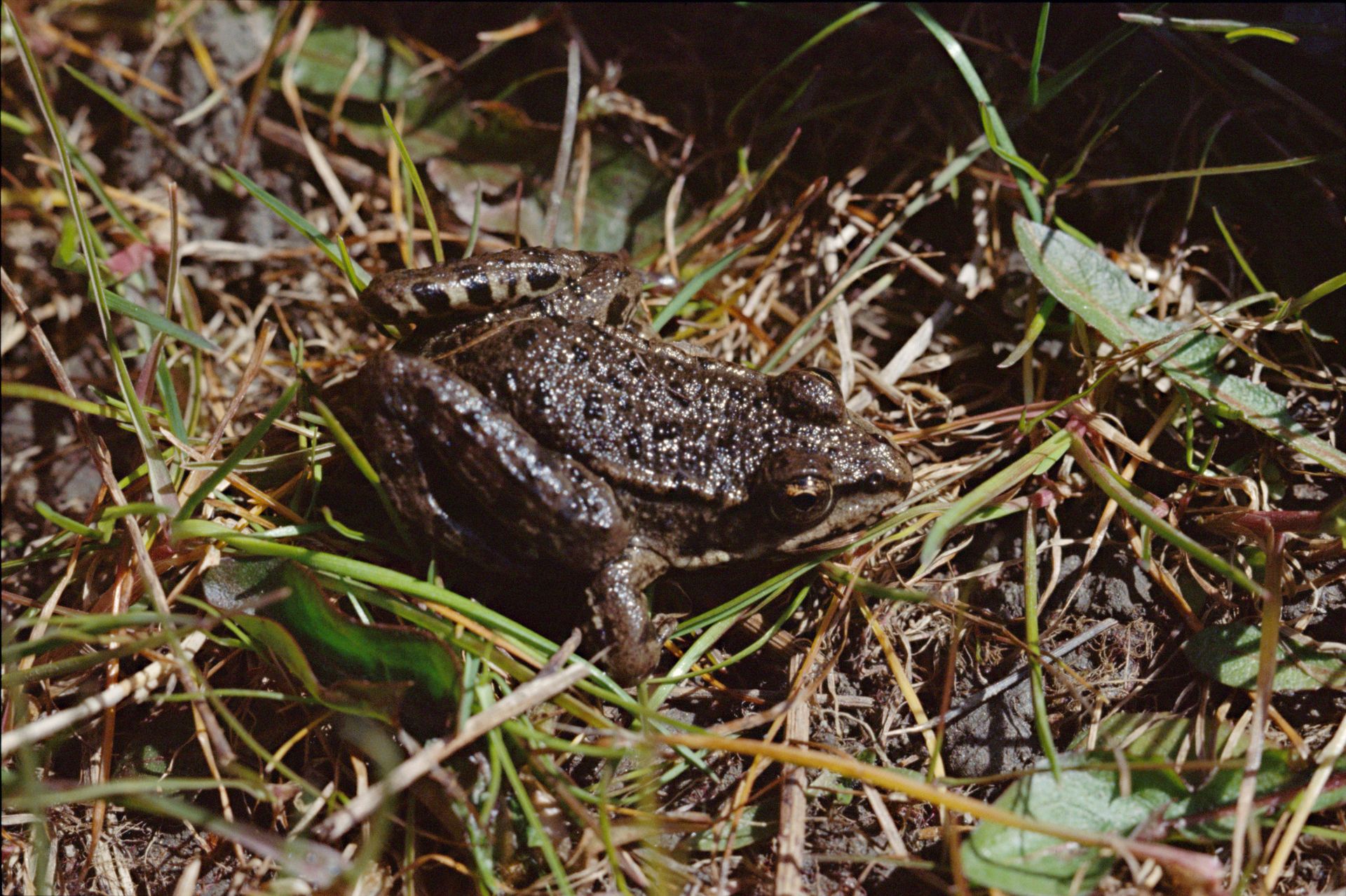 La Grenouille rieuse est une grosse grenouille de couleur vert olive plus ou moins foncé ou grisâtre, avec de longues et puissantes pattes à palmure très développée. Les sacs vocaux des mâles sont sombres.