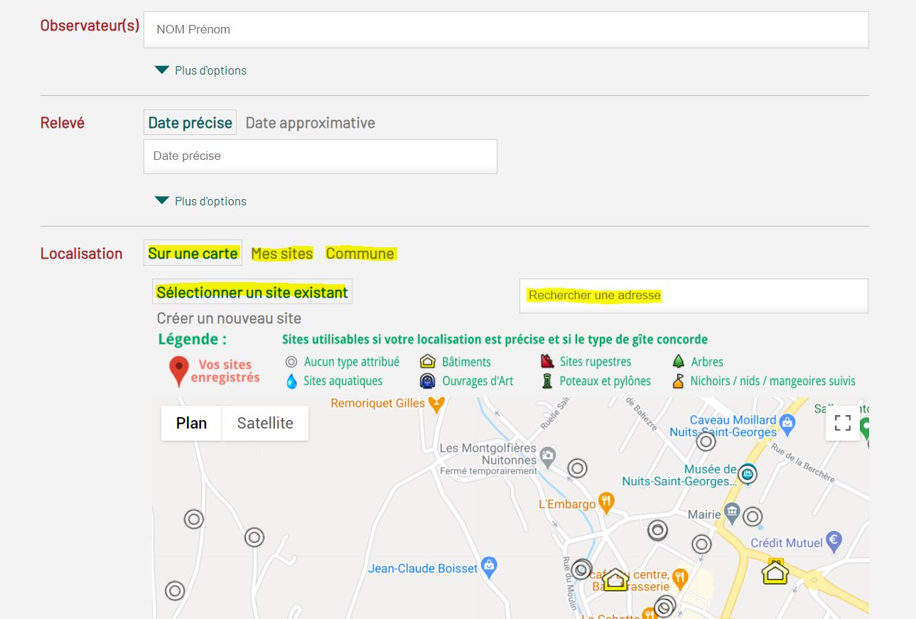 Vous avez plusieurs possibilités pour localiser votre observation :